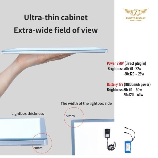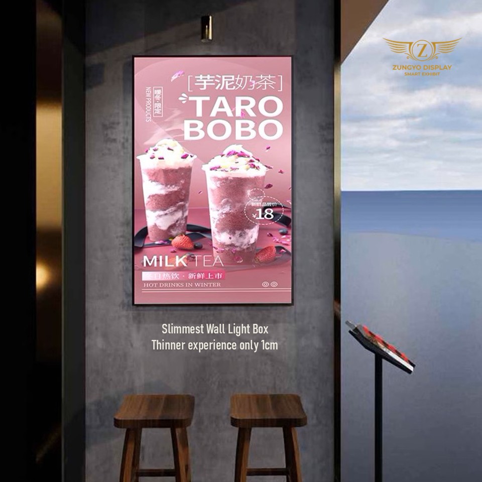 Elevate your retail store or showroom with our Super Slim LED Wall Light Box, compact and durable, perfect for displaying your products or services.
